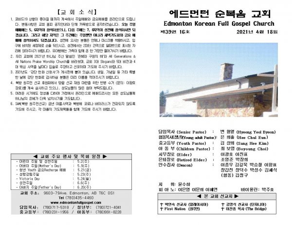 날짜: 2021.04.18 글쓴이 : 장갑진 | Sermon Summary