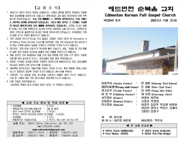 날짜: 2021.01.31 글쓴이 : 장갑진 | Sermon Summary