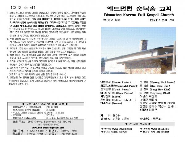 날짜: 2021.02.07 글쓴이 : 장갑진 | Sermon Summary